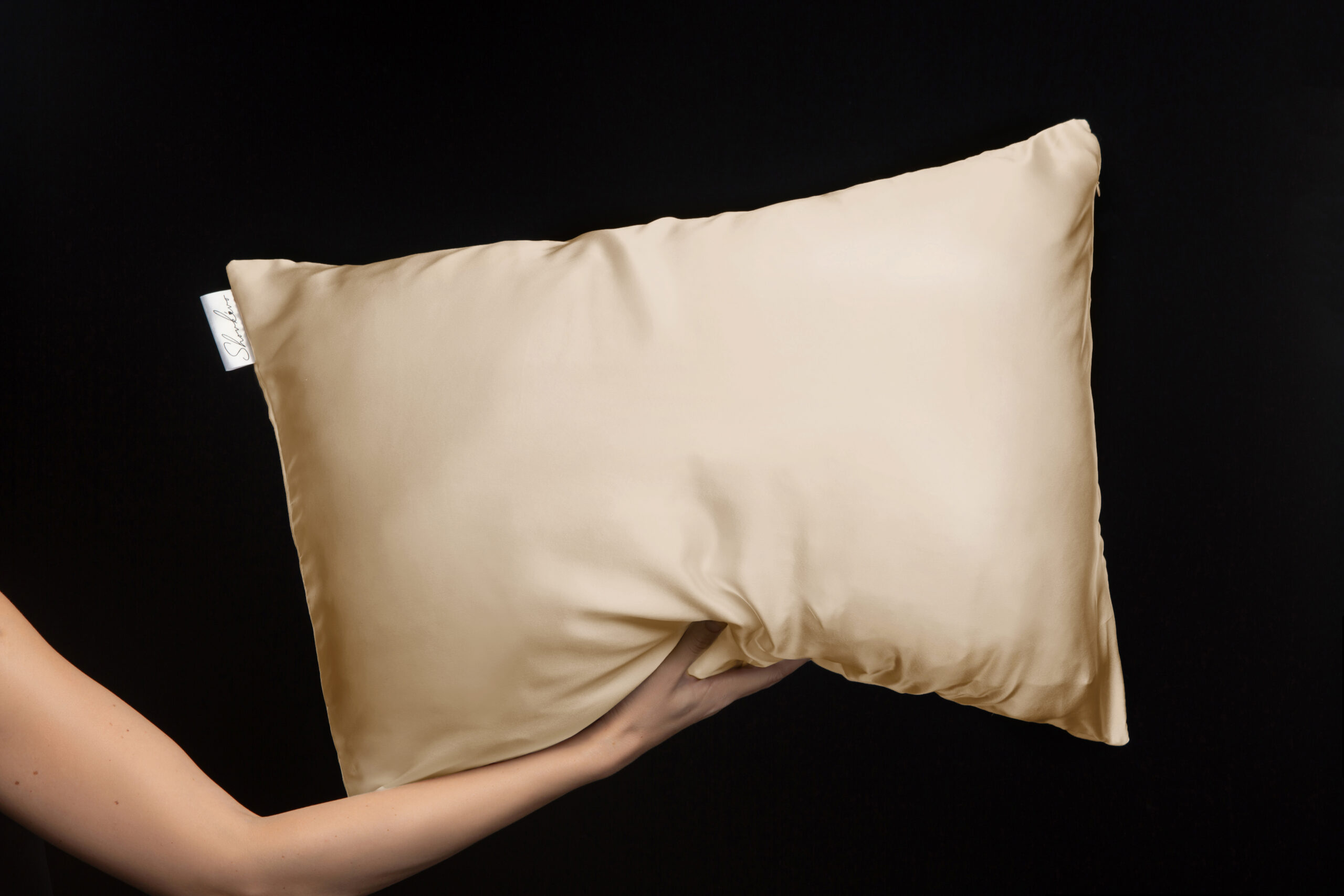 Наволочка зі 100% натурального шовку з брендованим прапорцем, на якому є вказівки по догляду за виробом, боковою потаємною блискавкою та ідеально виконаними внутрішніми швами.